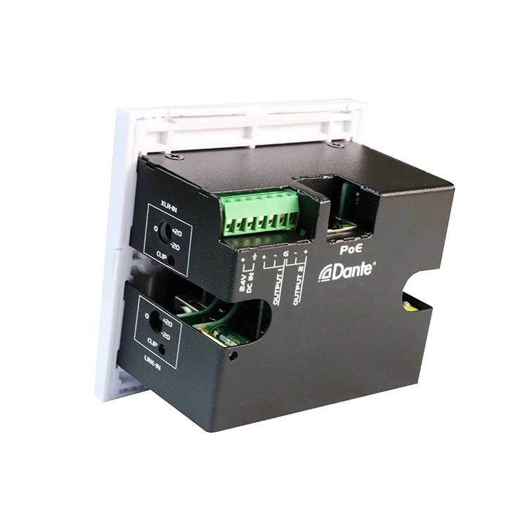 Die 2CH Dante Interface 2 Mic/Line-insette x 2 Uitsette-koppelvlakpaneel is ideaal vir professionele klanktoepassings, soos konferensiekamers, regstreekse klankopstellings, uitsaaiateljees en geïnstalleerde AV-stelsels, waar betroubare Dante-tot-analog en analoog-na-diante-omskakeling nodig is in 'n kompakte, rack-vrye vormfaktor. Die muurgemonteerde ontwerp maak voorsiening vir skoon en doeltreffende integrasie in verskillende omgewings, terwyl die klankprestasie van hoë gehalte gehandhaaf word.