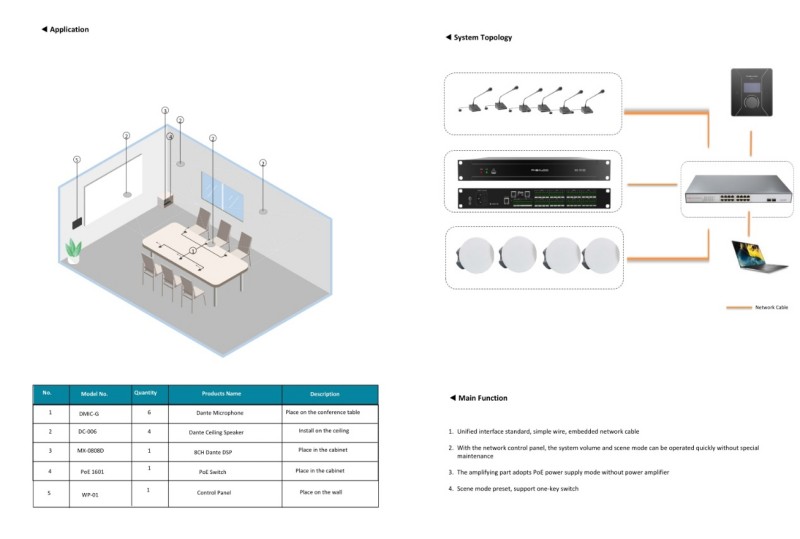 o Skakeling met BMS -stelsel: maak kontak met die boubestuurstelsels (soos Crestron) deur Dante API om brandalarm geforseerde uitsending te verwesenlik.